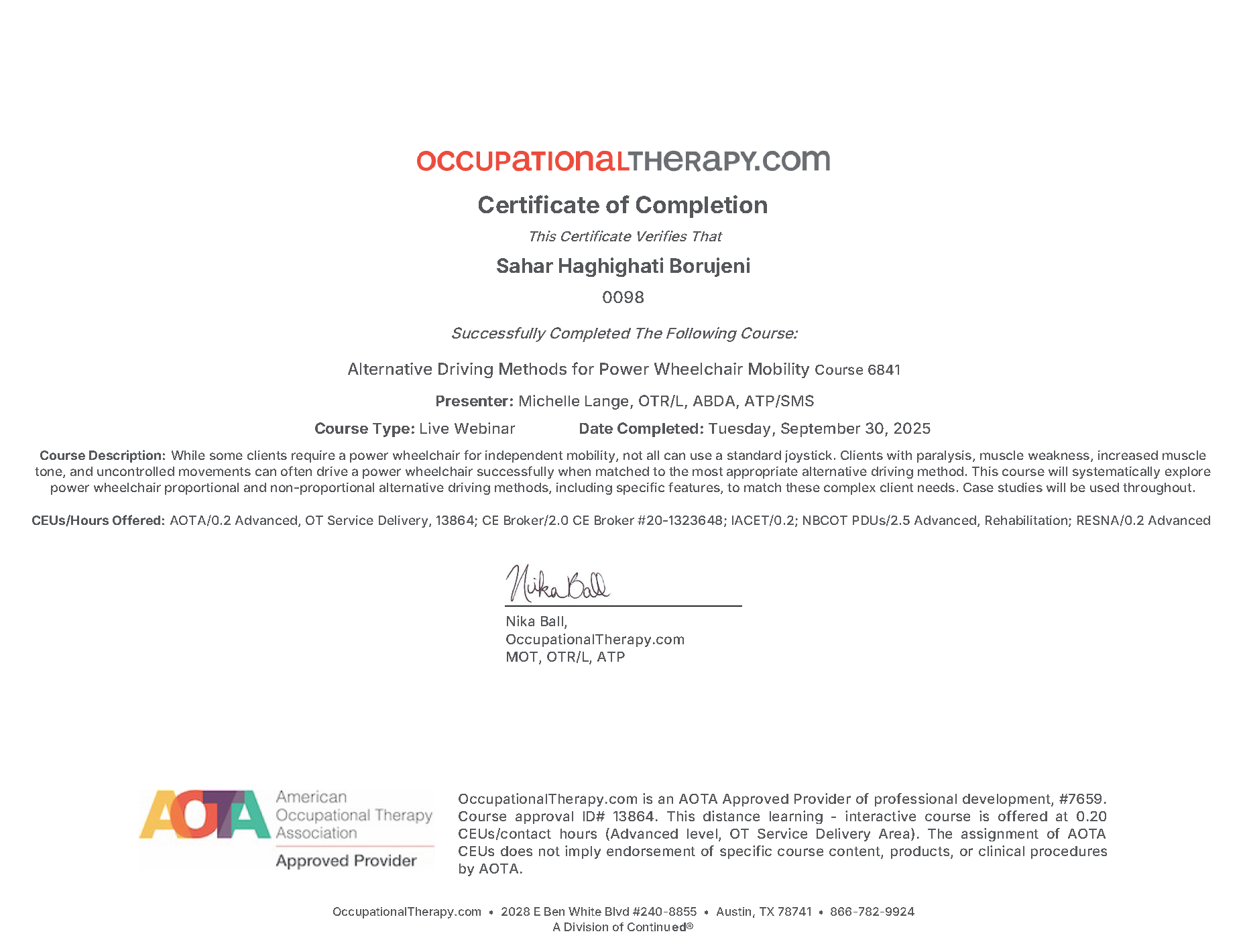 Beyond my clinical work, I am also deeply involved in the broader occupational therapy community. Over the years, I have held numerous workshops and seminars, sharing insights and best practices with fellow therapists, educators, and families. These events have covered a wide range of topics, including sensory integration, behavior management, and strategies for supporting children with autism in educational settings. My goal in these events is to empower others with the knowledge and tools they need to support children’s development effectively. I have also been a guest speaker at conferences and have contributed articles to professional journals, furthering the understanding of pediatric occupational therapy.